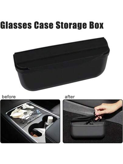 Organizador de consola central con 3 soportes para gafas de sol, caja de almacenamiento para llaves, tarjetas y monedas, gancho de silicona con acabado aterciopelado como accesorio para el modelo Y - A - Añade 1