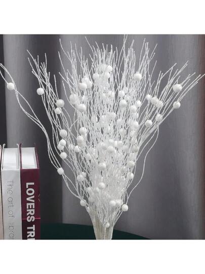 Decoración navideña con ramas blancas de imitación y bayas secas. Ramitas brillantes, guirnaldas de flores y flores pequeñas para el invierno, ideal para el hogar, el escritorio, el jardín, etc. Juego de 16 piezas. - Blanco - Añade 2