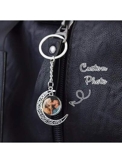 1 pieza Llavero personalizado con foto y colgante de media luna con cúpula de cristal luminoso, llavero con imagen personalizada, regalo conmemorativo creativo, accesorio para bolso, mochila y coche, para mujeres - Multicolor - Añade 1