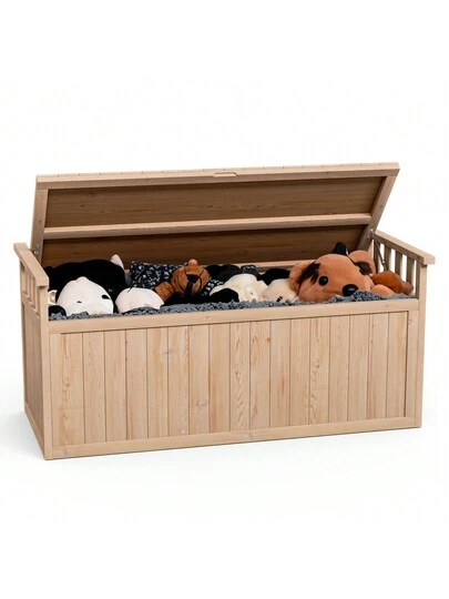 Caja de cubierta de madera de 55 galones, caja de almacenamiento para exteriores para muebles de patio, banco de almacenamiento para exteriores del patio trasero para cojines, herramientas de jardín y accesorios de piscina - Madera natural - Añade 7