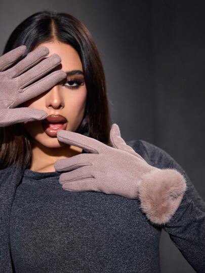SHEIN SXY Manoplas con forma de corazón de peluche, para uso casual diario y en el hogar - Caqui - Añade 5