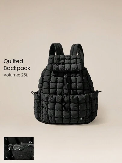 GLOWMODE Mochila acolchada de uso diario y casual con cierre con solapa superior, bolsillos dobles exteriores prácticos y correas ajustables - Negro - Añade 1