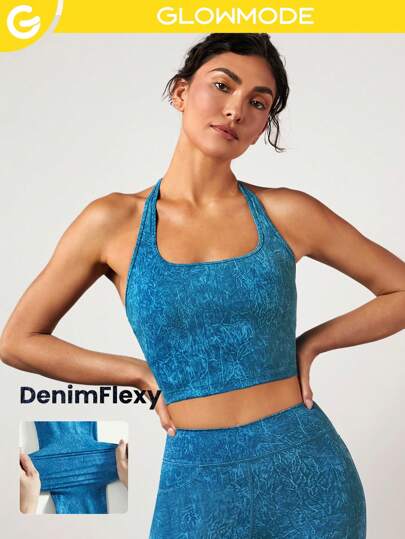 GLOWMODE Sujetador Deportivo Elástico Halter Denimflexy Hottie - Multicolor - Añade 1