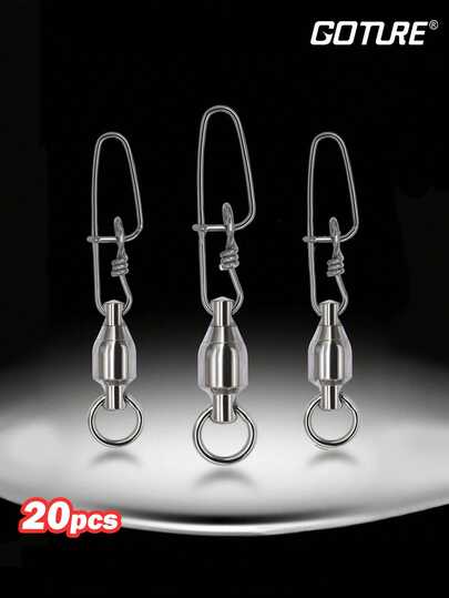 20 piezas Giratorias de acero inoxidable con rodamientos de bolas de Goture - Conector doble de broche con pasador de bloqueo interno para un equipo de pesca - Plateado - Añade 3