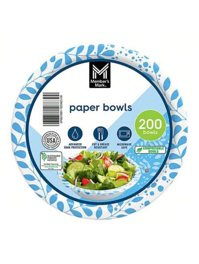 Tazones de papel para aperitivos/dips de 12 onzas, paquete de 200 unidades, de la marca Member's Mark, para fiestas de Navidad, oferta del - Azul y blanco - Añade 5
