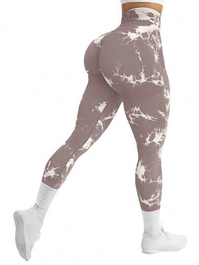 Easithlete Leggings de cintura alta, simples, con estampado de teñido anudado, elásticos y sin costuras para mujeres - Multicolor - Añade 1