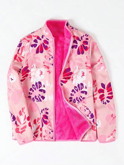 Chaqueta cálida con cuello alto y estampado de moda para niñas, invierno - Rosa - Añade 3