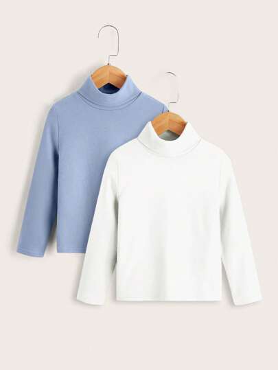 SHEIN Camiseta Casual Cómoda Con Cuello Alto A Juego Y En Color Sólido Para Chicas - Azul - Añade 2