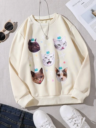 Chicas Sudadera con estampado de gato - Albaricoque - Añade 4