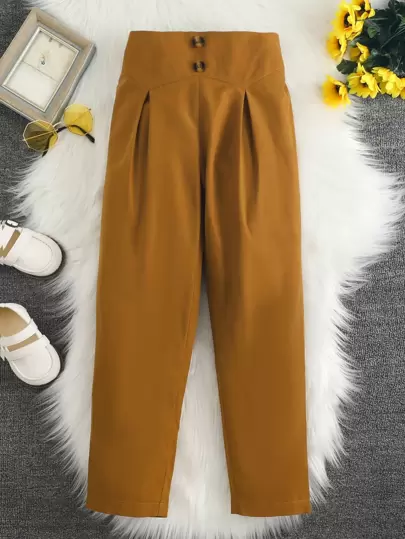 Chicas Pantalones con diseño de fruncido con botón delantero - Marrón - Añade 1