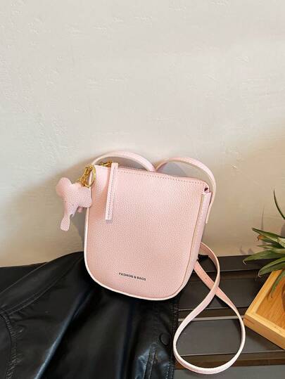 Chicas Bolsa cuadrada con estampado de letra con con diseño de elefante - Rosa - Añade 1