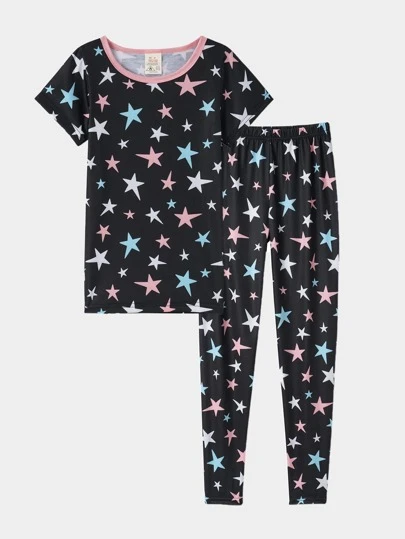 Pijamas para Chicas Geométrico todo estampado Dulce - Negro - Añade 1