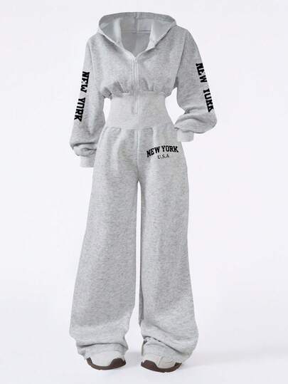 Mono estampado con letras de estilo para niñas, diseño de moda casual y elegante para exteriores, primavera/otoño - Gris - Añade 1