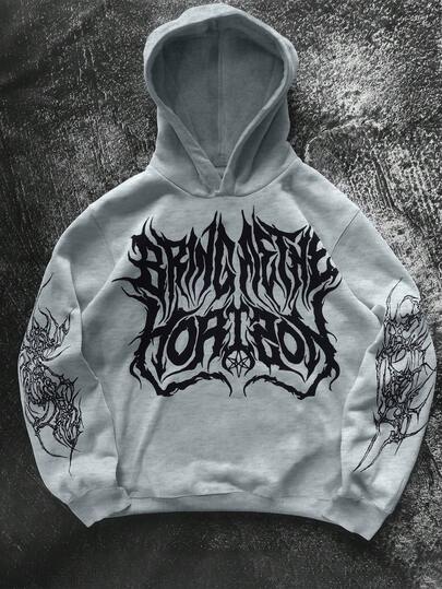 Glimmora Sudadera con capucha holgada y casual de moda versátil con diseño de arte callejero para mujer - Gris - Añade 5