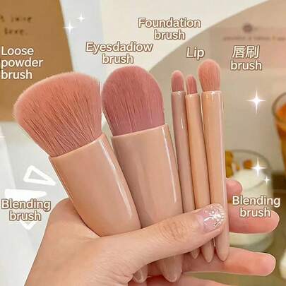 Gloway Set de 5 piezas de brochas de maquillaje de viaje mini personalizadas en color rosa, herramientas cosméticas, kit de brochas de maquillaje portátil con espejo