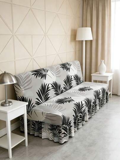Funda de sofá cama con estampado de hojas grises, sin reposabrazos, de fibra de poliéster, adecuada para todas las estaciones, sencilla y moderna - Gris - Añade 1