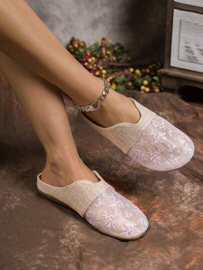 Sandalias planas para mujer, sandalias de verano con estilo chino casual nuevo, con suela antideslizante, de red calada y de punta cerrada, adecuadas para vestidos - Morado - Añade 1