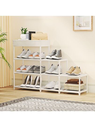 Estante de almacenamiento de cuatro capas, estante de almacenamiento para zapatos, estante de almacenamiento multifuncional para el hogar, montaje de gabinete de zapatos, estante de zapatos blanco - Blanco - Añade 4