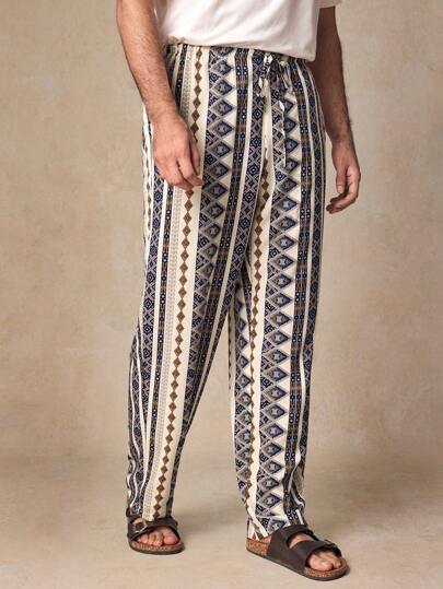 GENTILAND Pantalones rectos de cintura media con cordón y estampado casual para hombres - Multicolor - Añade 1