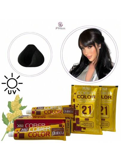 Xiomara Cober Color Tinte Permanente para Cabello. Incluye 2 tubos de 60g c/u + 2 Peróxidos de 90ml c/u - 1 NEGRO - Añade 3