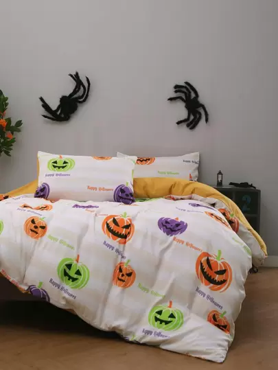 Set colcha sin relleno Halloween con patrón de calabaza - Multicolor - Añade 8