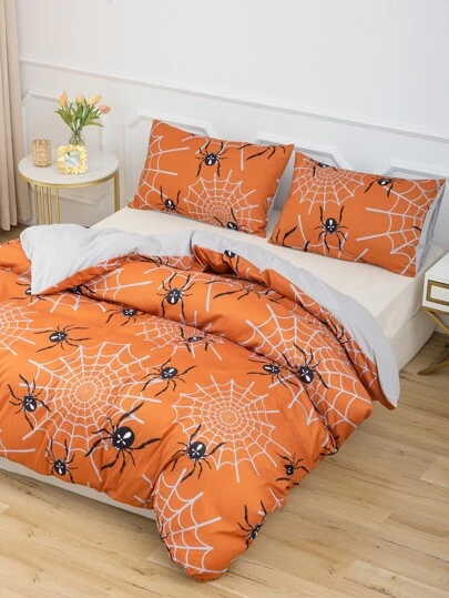 Set colcha sin relleno Halloween con patrón de araña - Multicolor - Añade 1