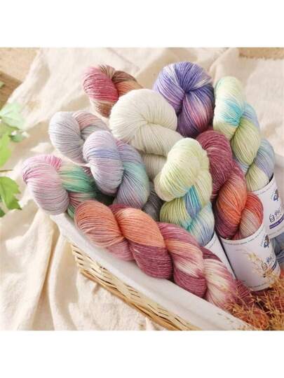 Set de 3 hilos de lana teñidos a mano, hermoso hilo de lana para hacer manualmente bufandas, sombreros y suéteres DIY - Multicolor - Añade 7