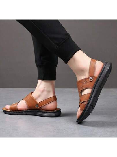 Sandalias y pantuflas de playa de verano transpirables hechas a mano y de doble propósito para hombres - Marrón - Añade 1