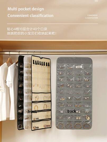 Organizador colgante de joyas con rollo y ganchos metálicos, soporte de joyas de doble cara para aretes, collares y anillos para el armario, la pared o la puerta - Multicolor - Añade 1