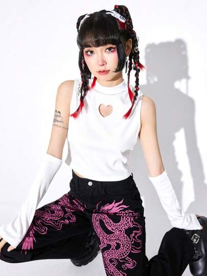 ROMWE J-Fashion 1 par Top tank crop corazón recortado con mangotes - Blanco - Añade 1