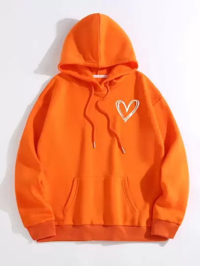 INAWLY Capucha térmica con estampado de corazón con bolsillo de canguro con cordón - Naranja - Añade 3