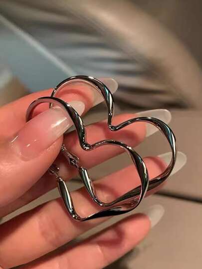 Pendientes de aro en forma de corazón - Plateado - Añade 1