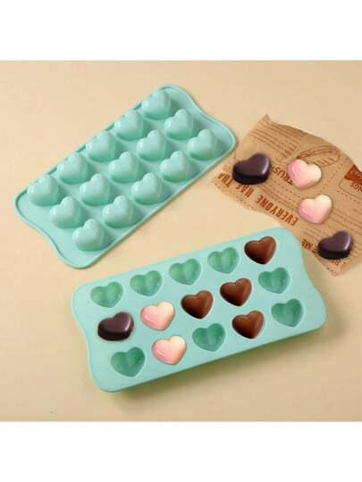 Molde de silicona en forma de corazón para hacer cubos de hielo, bandeja grande con tapa, molde para DIY de cubos de hielo - Verde - Añade 2