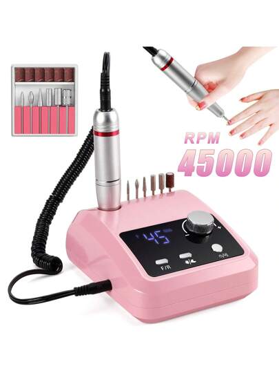Máquina de taladro de uñas eléctrico de alta calidad 45000 RPM, lima eléctrica con pantalla HD, pluma de manicura de metal, torno profesional para uñas y lijadora - Añade 7