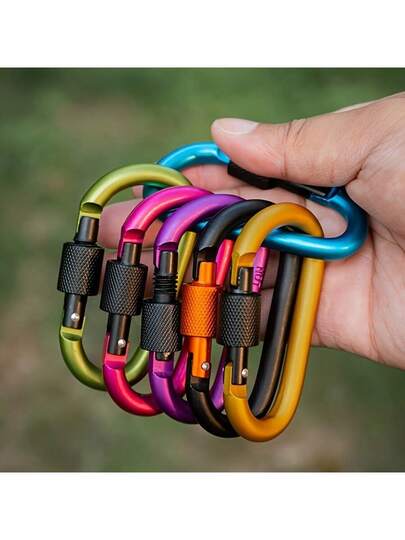 Mosquetón de anilla en D reforzado y con cerradura de alta calidad, gancho de resorte de aleación de aluminio para mochila, escalada, camping, senderismo, pesca, rafting - Multicolor - Añade 5
