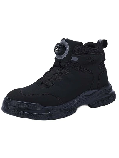 Zapatos de seguridad de caña alta para hombres, anti-aplastamiento y anti-perforación, livianos, transpirables, nuevo estilo adecuado para todas las estaciones - Negro - Añade 1