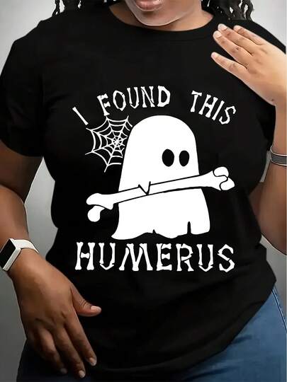 Camiseta gráfica de Halloween para mujer - Suave, duradera, cuello redondo, top casual para primavera, verano y otoño - Lavable a máquina - Negro - Añade 4
