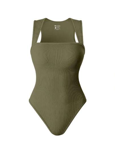 Bodis de tirantes con cuello cuadrado sin mangas con control de abdomen - Colorante kimchi - Añade 1