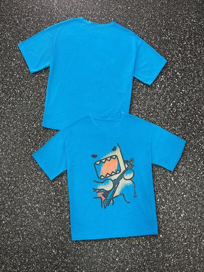 INAWLY Camiseta casual versátil para mujer con cuello redondo y manga corta, con estampado de dibujos animados - Azul - Añade 4