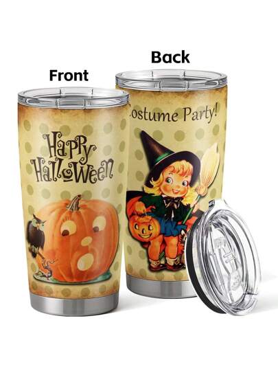 Vaso de acero inoxidable con elemento de Halloween, patrón de bruja y calabaza, fácil de llevar, gran capacidad, adecuado para viajes, coche, estudiantes, regalo de vacaciones de Halloween - Multicolor - Añade 1