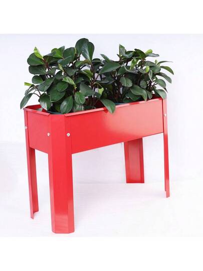 Cama de jardín elevada mini, maceta elevada de metal para exteriores, apta para el patio trasero y la terraza, maceta grande, apta para verduras y flores - Rojo - Añade 1