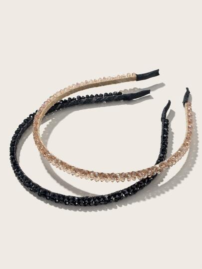 2 piezas diademas de doble hilera de cristales reales para mujer, accesorios elegantes para el cabello para salir, diseño fino de línea de pesca - Multicolor - Añade 2