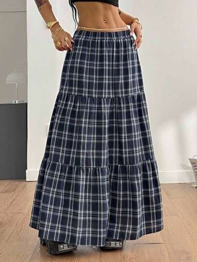 Coolane Faldas largas holgadas de talle bajo, estilo básico casual de cuadros, para conciertos de verano y estilo callejero Y2K para mujeres - Multicolor - Añade 1