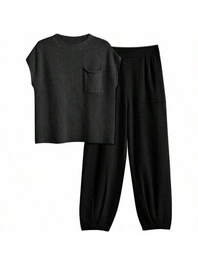 Conjunto de 2 piezas de punto para mujer LILLUSORY, conjunto de chándal - Negro - Añade 2