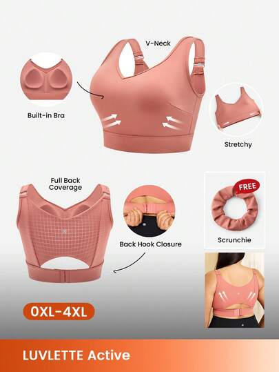 LUVLETTE Sujetador deportivo básico de talla grande con soporte medio y tirantes anchos, para actividades casuales y deportivas, como ropa exterior - Rosa Roja - Añade 4