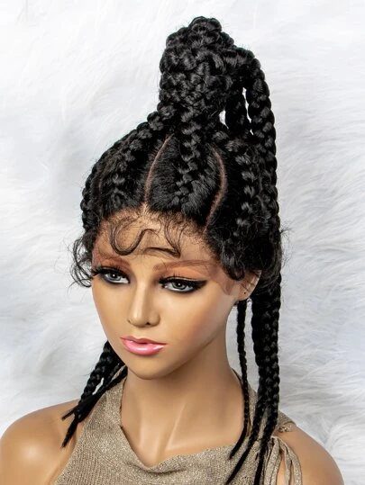 Peluca sintética con encaje delantero trenzado - Negro - Añade 4