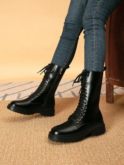 Botas de combate con cordón delantero hasta media pantorrilla - Negro - Añade 4