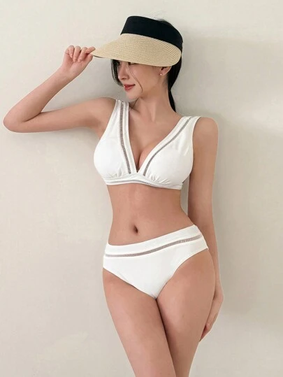 DAZY Conjunto de bikini sin mangas con espalda calada para mujer, traje de baño tipo tankini para vacaciones de verano - Blanco - Añade 5