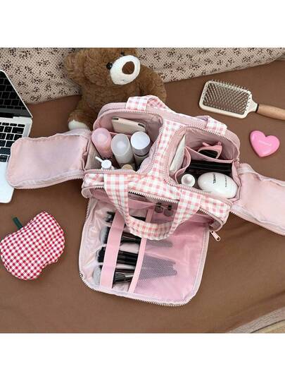 Neceser impermeable de gran capacidad, ligero y de gran apertura para mujer, organizador de maquillaje y cosméticos con asa para accesorios, artículos esenciales y artículos de tocador.