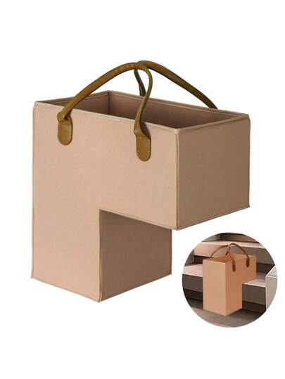 Cesta plegable de almacenamiento para escaleras de gran capacidad con asa, cubo organizador para el hogar para juguetes y diversos - Mango marrón oscuro - Añade 1